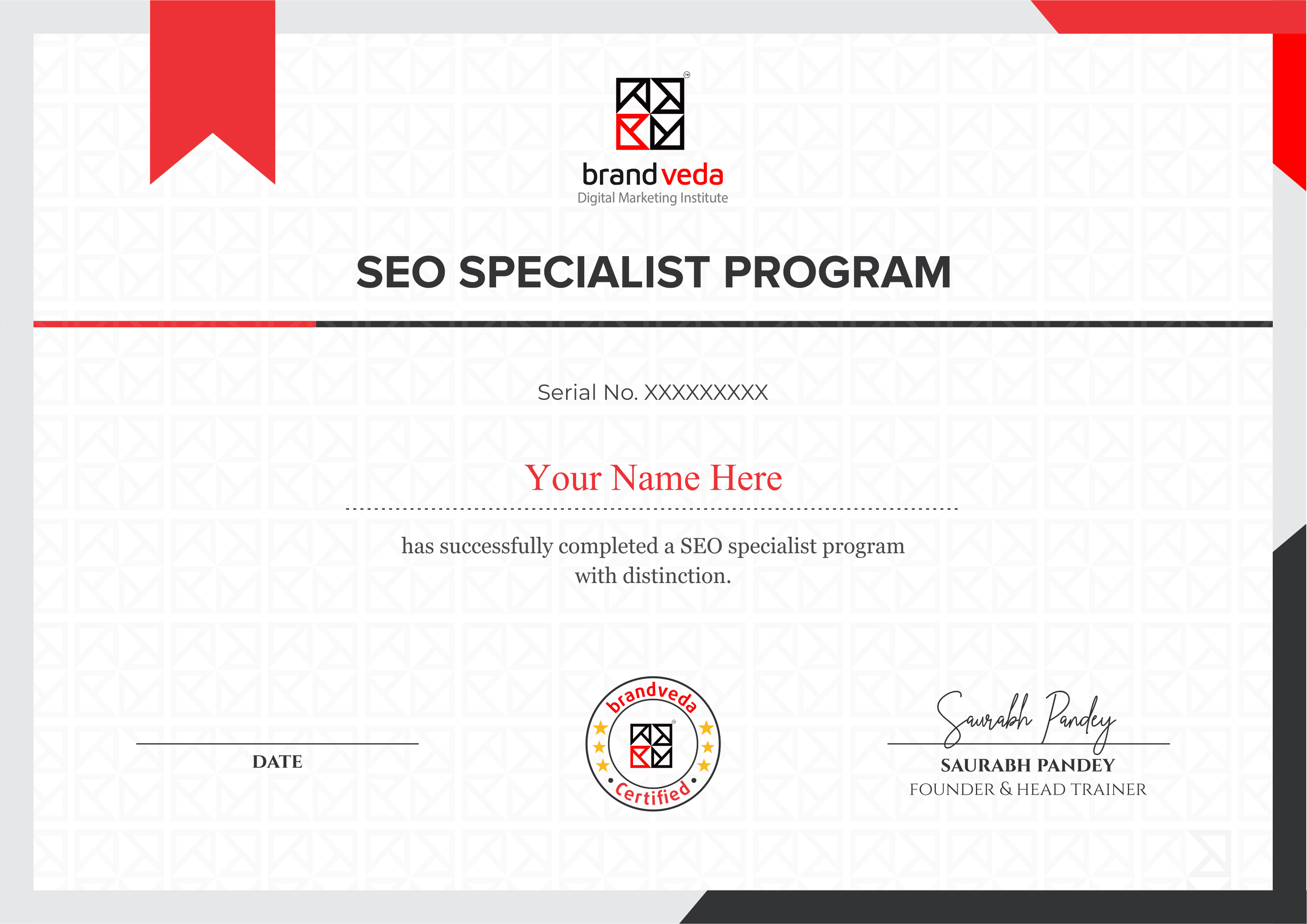 No Earnings Claims: Brandveda Institutes Pvt Ltd does not guarantee specific outcomes or earnings as a result of taking the "SEO Genius" course. Outcomes vary based on individual effort, industry changes, and other external factors.